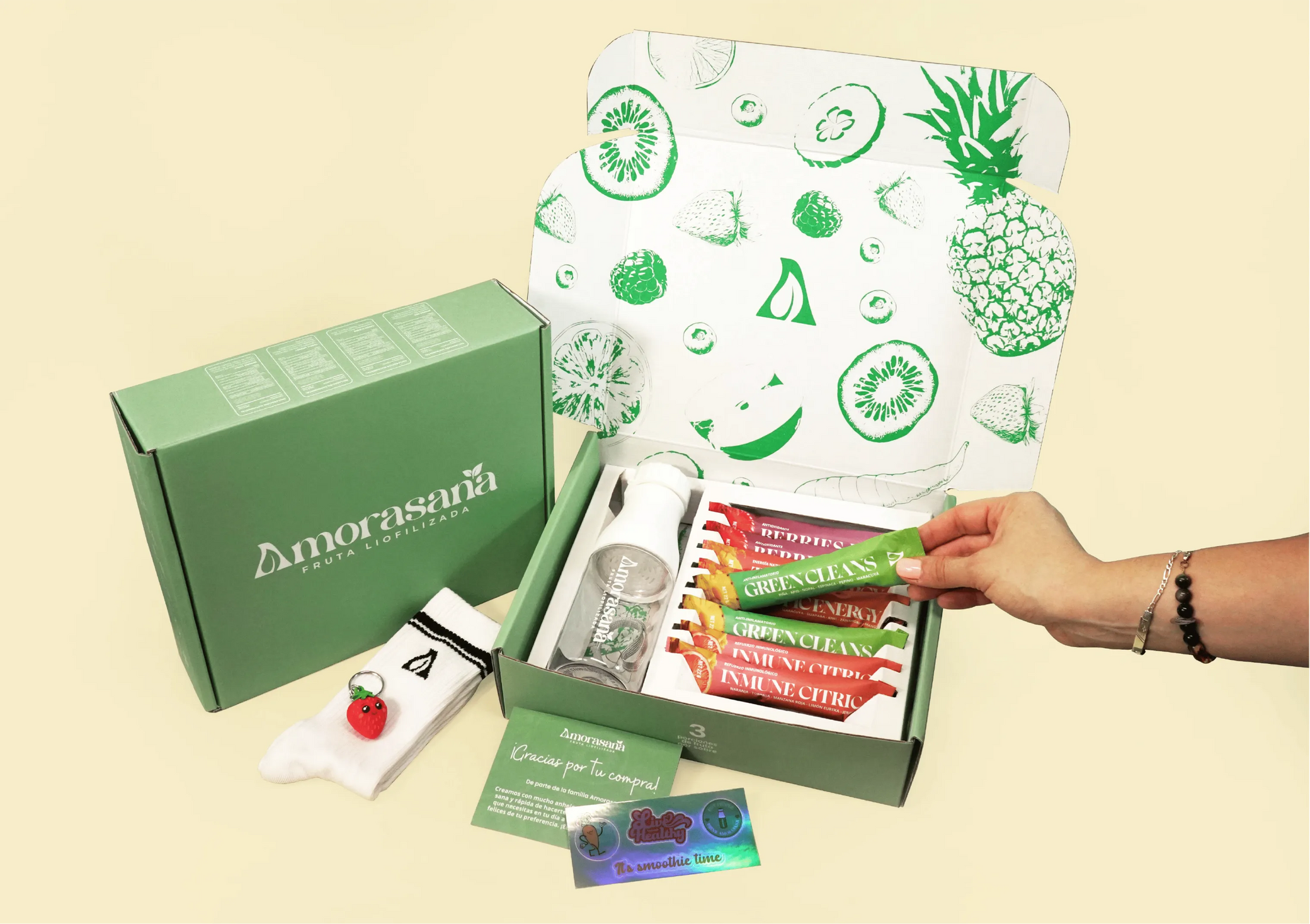 Amorasana es una marca mexicana de smoothies instantáneos elaborados con frutas y verduras 100% naturales, liofilizadas (es decir, les quitamos el agua en frío para conservar nutrientes, sabor y color sin conservadores). Son prácticos, saludables y pensados para personas que quieren cuidar su salud sin complicarse la vida.