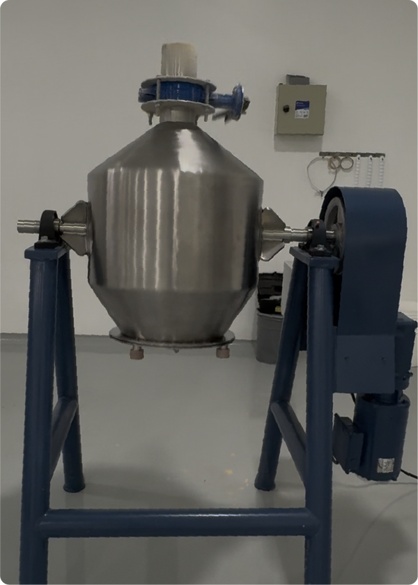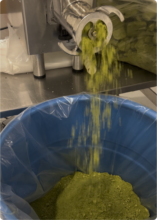 Convertimos nuestro apio liofilizado en un polvo fino y lo metemos a una mezcladora con el resto de frutas y verduras