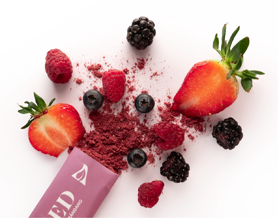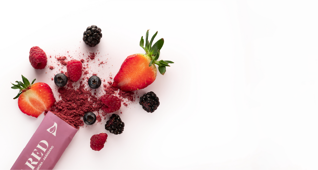Lo que ves en cada sobre de Amorasana es fruta y verdura fresca, que pasó por un proceso llamado liofilización que conserva sus nutrientes, sabor, color y textura.