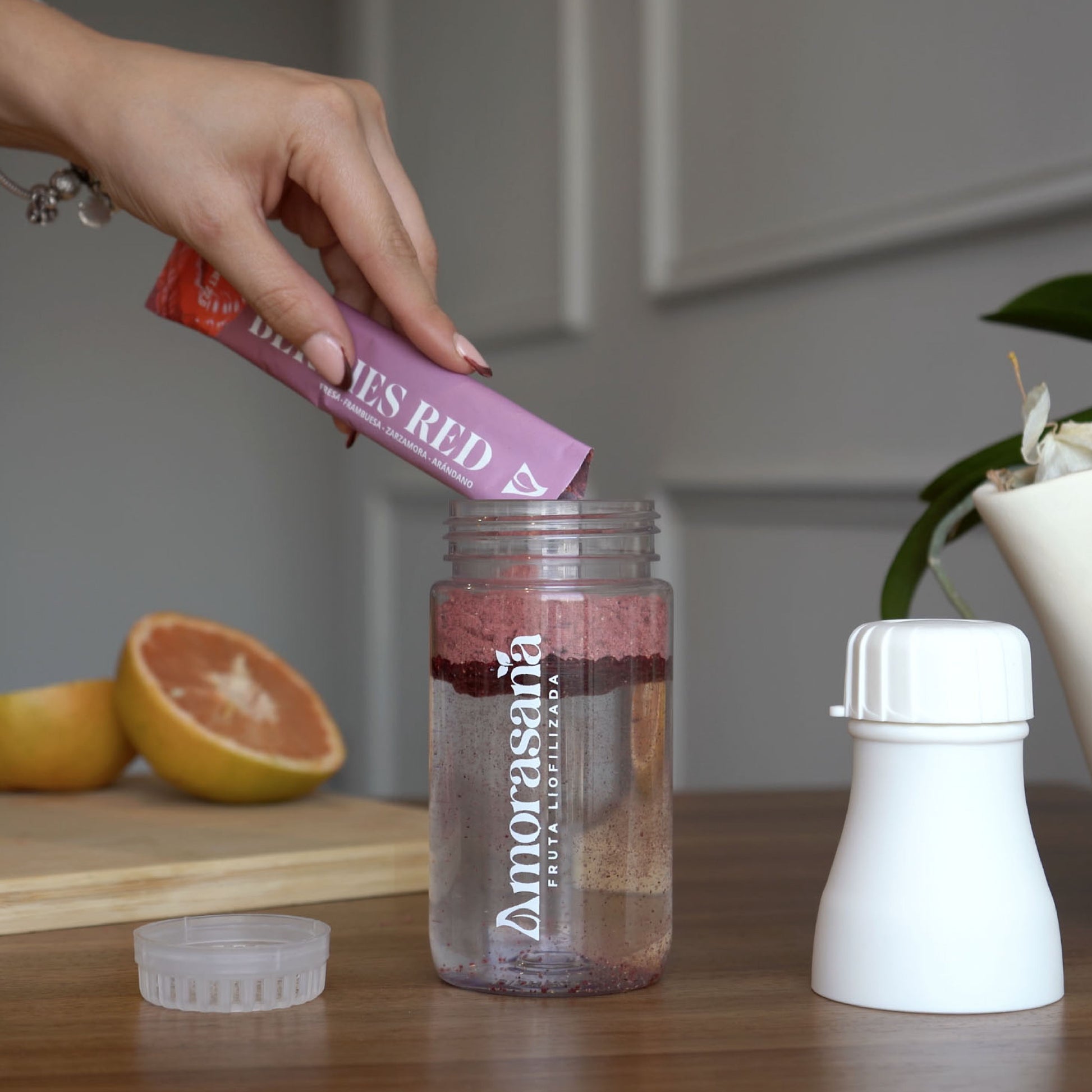 Amorasana es una marca mexicana de smoothies instantáneos elaborados con frutas y verduras 100% naturales, liofilizadas (es decir, les quitamos el agua en frío para conservar nutrientes, sabor y color sin conservadores). Son prácticos, saludables y pensados para personas que quieren cuidar su salud sin complicarse la vida.