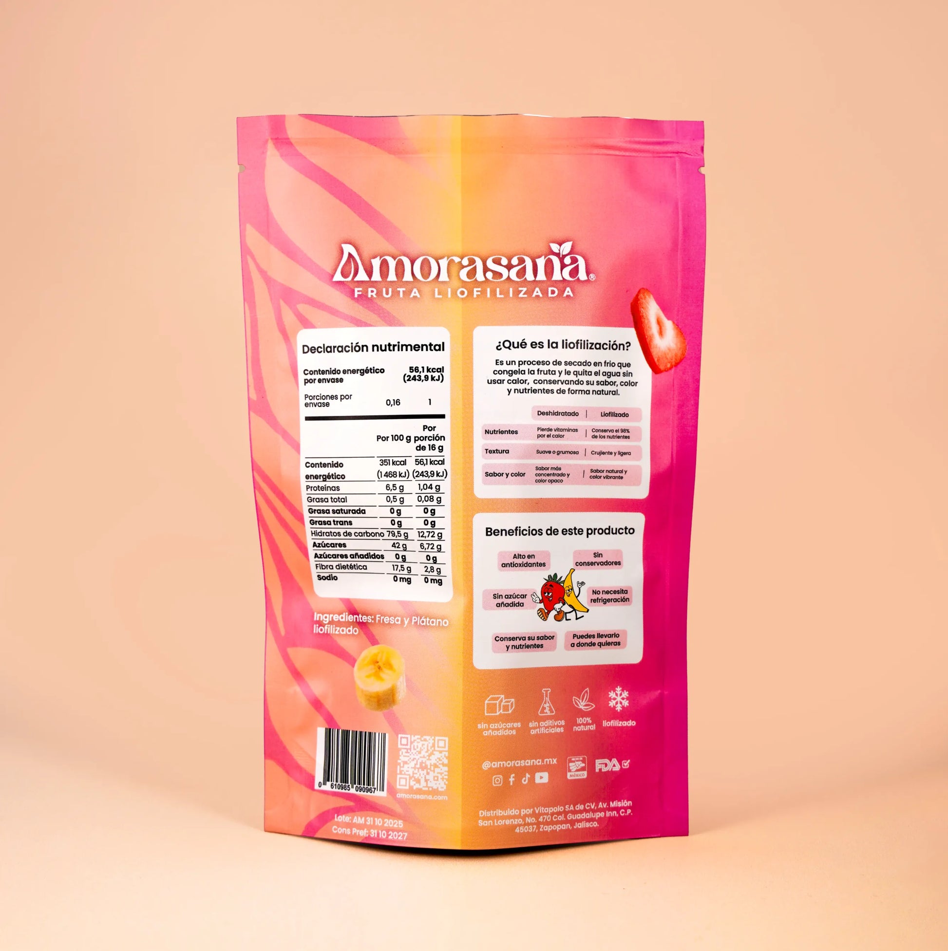 Amorasana es una marca mexicana de smoothies instantáneos elaborados con frutas y verduras 100% naturales, liofilizadas (es decir, les quitamos el agua en frío para conservar nutrientes, sabor y color sin conservadores). Son prácticos, saludables y pensados para personas que quieren cuidar su salud sin complicarse la vida.