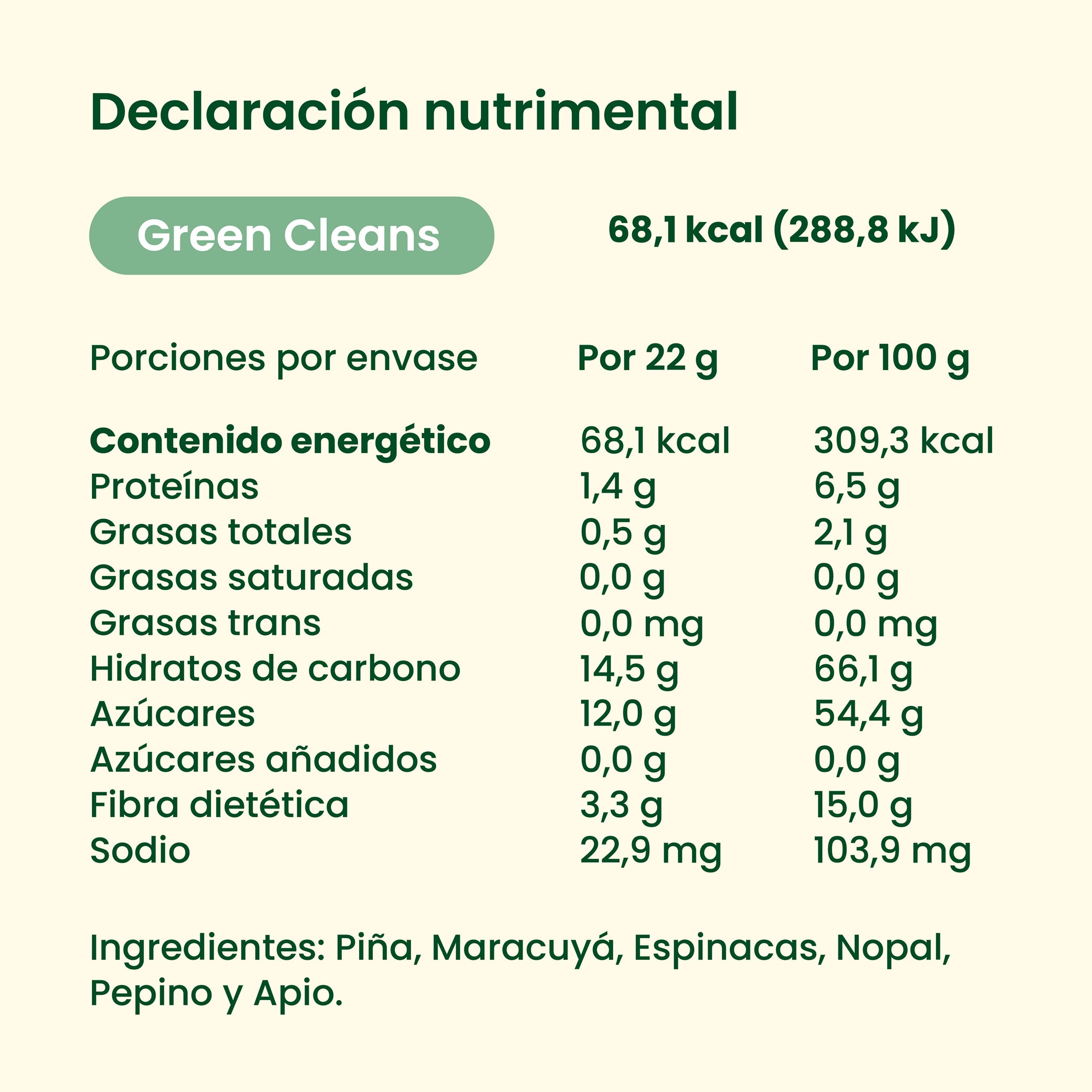 Disfruta de 3 porciones de fruta y verdura 100% natural en cada sobre