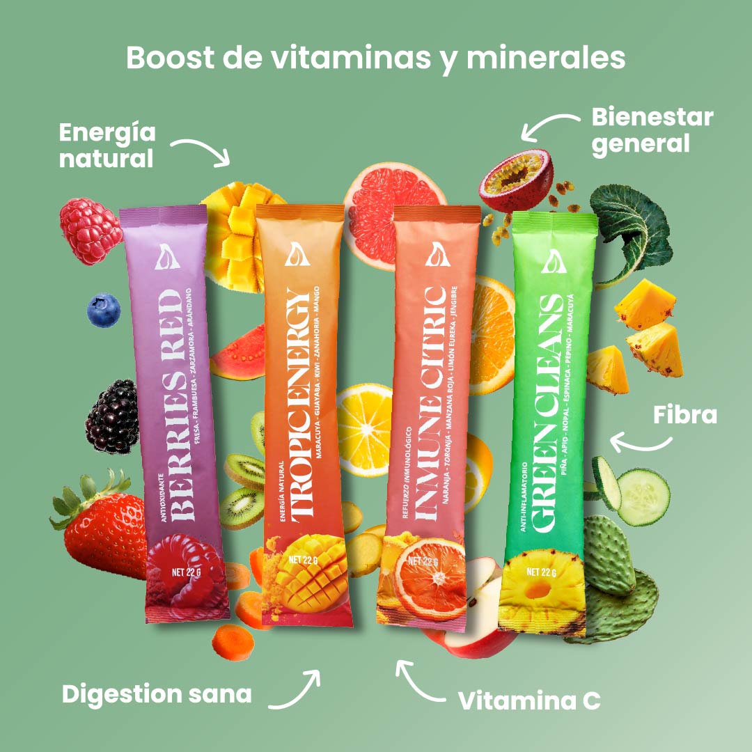 30 sobres x 30 días | 1 diario | Frutas y verduras REALES