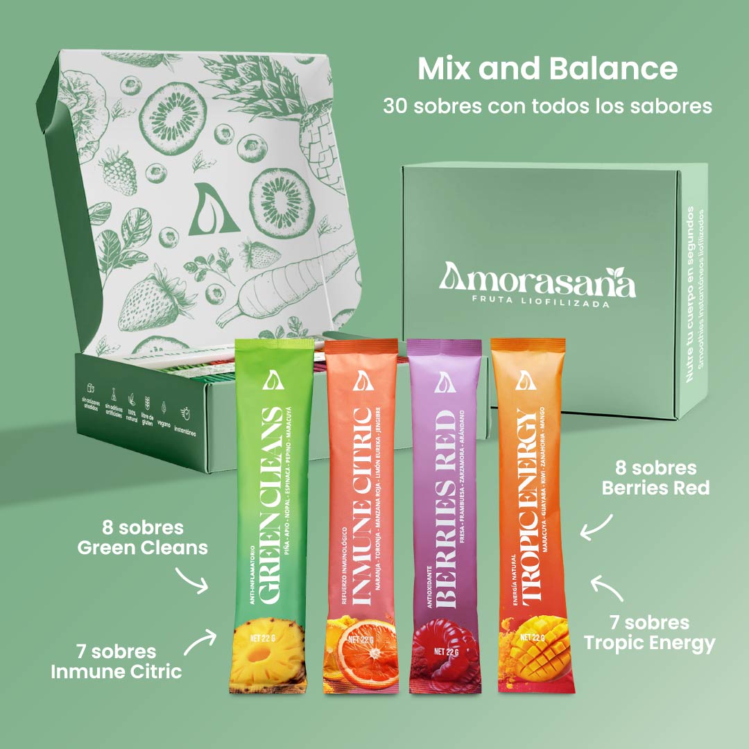 Amorasana es una marca mexicana de smoothies instantáneos elaborados con frutas y verduras 100% naturales, liofilizadas (es decir, les quitamos el agua en frío para conservar nutrientes, sabor y color sin conservadores). Son prácticos, saludables y pensados para personas que quieren cuidar su salud sin complicarse la vida.